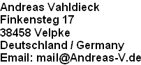 Für den Inhalt der einzelnen gelinkten Homepages ist ausschließlich der betreffende Autor selbst verantwortlich; sie dienen lediglich Informationszwecken und ich mache mir diese Inhalte nicht zu Eigen! Ich möchte ausdrücklich betonen, dass ich keinerlei Einfluss auf die Gestaltung und die Inhalte der mir gelinkten Seiten habe und deshalb keinerlei Haftung übernehme. Falls die Links zu Seiten führen, die illegale Inhalte haben und gegen bestehendes Recht verstoßen oder Ihre persönlichen Rechte verletzen, bitte ich um einen offiziellen Hinweis; ein Anwalt braucht hierzu nicht eingeschaltet werden. Der "Code 431.322.12 of the Internet Privacy Act", der 1995 von Bill Clinton verabschiedet wurde, ist ebenso auf diese Seiten anwendbar. Falls ich mit der Veröffentlichung Ihr Copyright verletze, teilen Sie es mir bitte mit. Die Änderung erfolgt dann prompt. Falls sich die Rechtsprechung gravierend ändern sollte und der Inhalt dieser Seiten Unrecht sein sollte, bitte ich um die Möglichkeit zur Nachbesserung. Grundsätzlich freue ich mich über die Verlinkung meiner Seite auf andere Seiten und genehmige dies hiermit. Ich untersagen die Verlinkung jedoch ausdrücklich für/von Seiten, deren Inhalt ein strafrechtliches Vergehen (z.B. Kinderpornografie, Terrorismus,...) darstellt und dementsprechend auch geahndet wird. Der weitere Besuch meiner Website wird als Anerkennung vorab genannter Grundsätze ausgelegt.